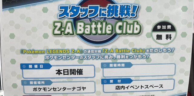 【ポケモンLEGENDS Z-A】スタッフに挑戦!Z-A Battle Club【ポケセンナゴヤ】 2025年12月7日 に やまむん が投稿 — コメントはありません ↓ 12月6日に参加。 ・イベント内容 「ポケモンセンタ 続きを読む 【ポケモンLEGENDS Z-A】スタッフに挑戦!Z-A Battle Club【ポケセンナゴヤ】→