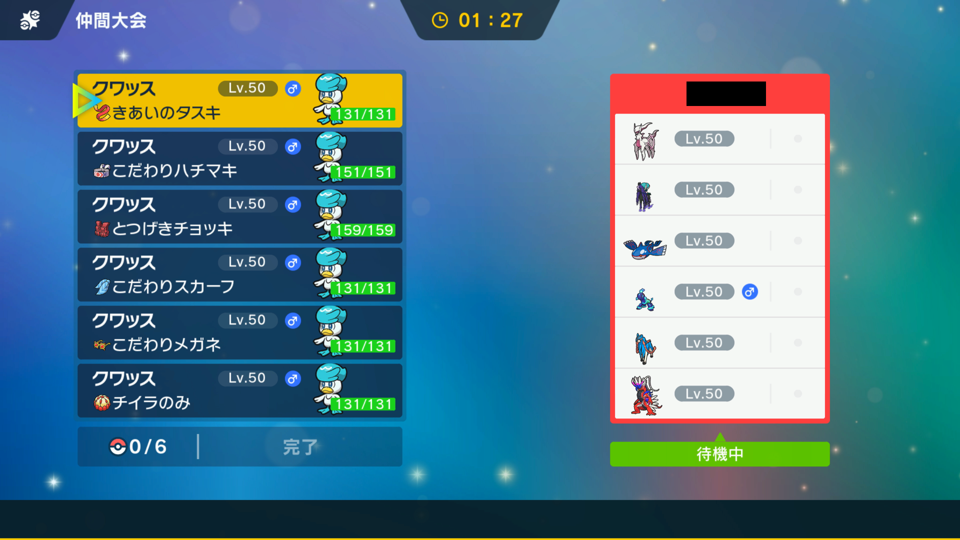 第3回大会にて、No.被り賞で頂いたタマゴから産まれた色違いクワッスで統一を組んで参戦。