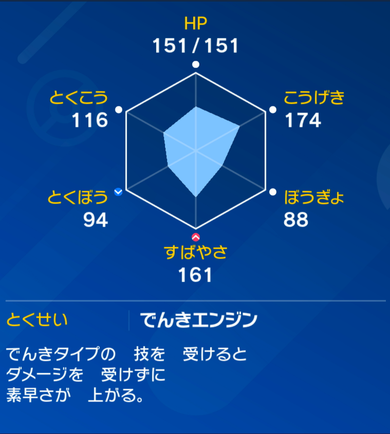 今回はお互いに電気エンジンが発動した場合確実に先制できるようSを最速にした。