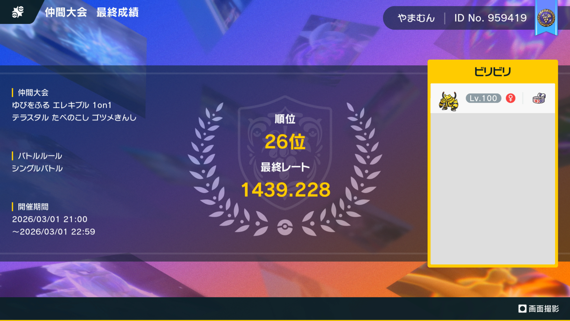 25戦目:「テクスチャ―2」で鋼タイプになられ、「どくどく」のダメージで負け。