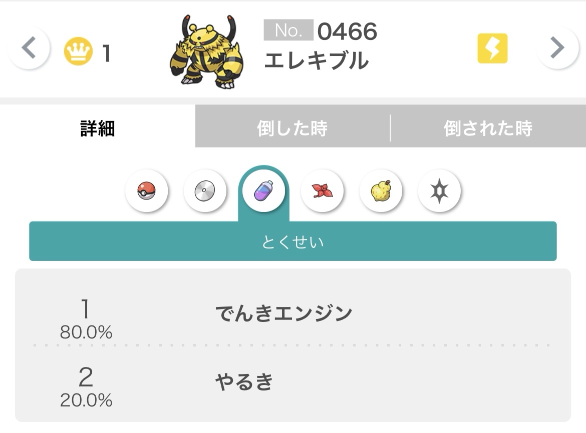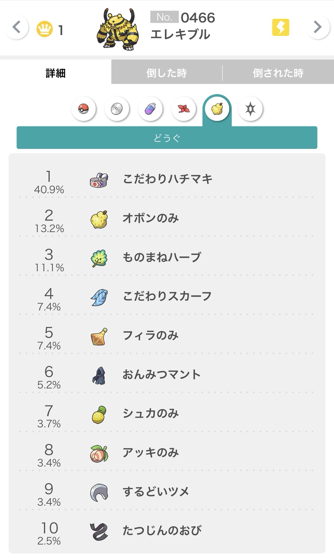 ・電気エンジンを考えると持ち物は拘りスカーフも一考の余地がある。ただ環境は拘り鉢巻が最も多かったため殴り合いに弱いのが気になる。