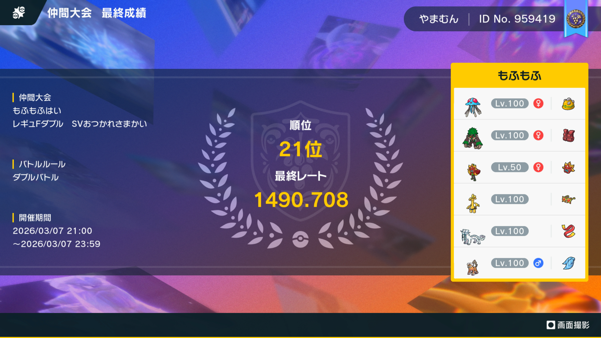 レギュレーションF準拠ダブル(=伝説、幻禁止)