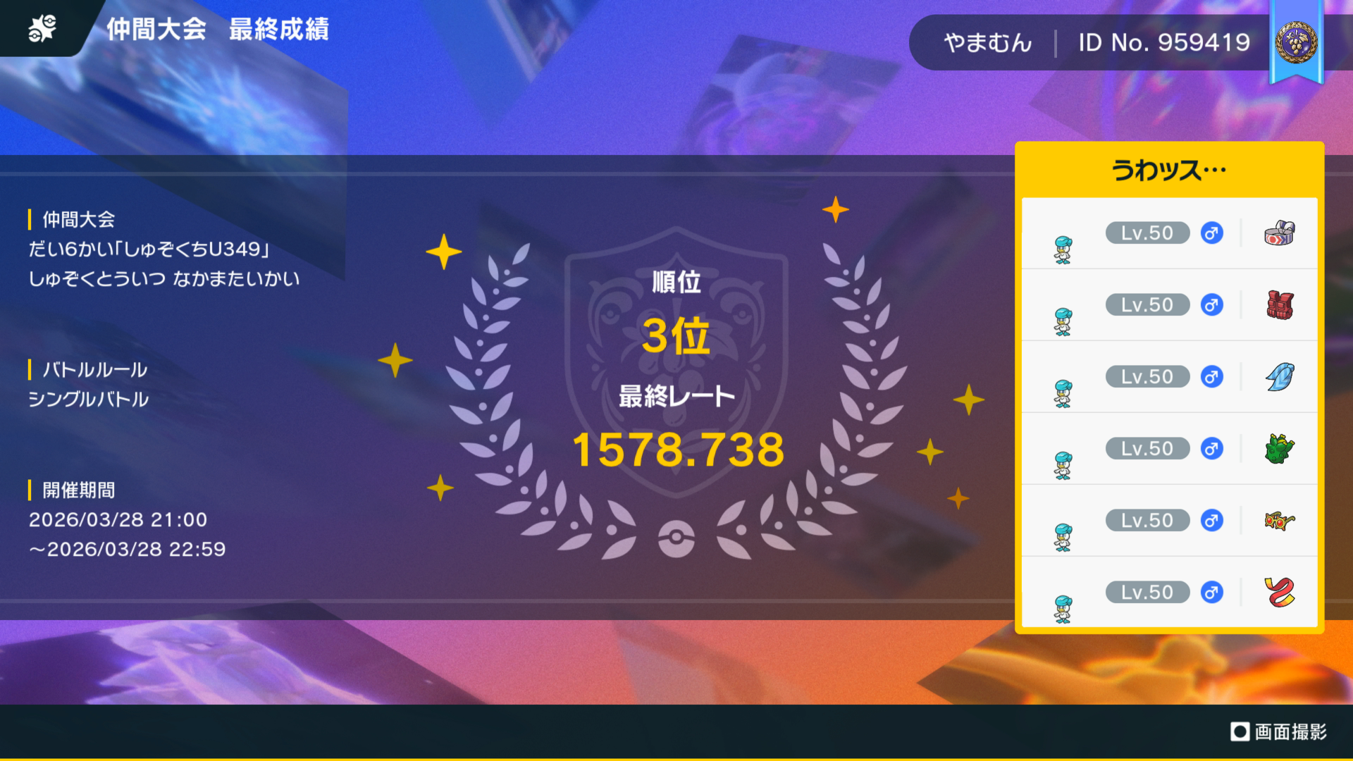 最終レート1578.738 エントリー数参加者数21人中3位